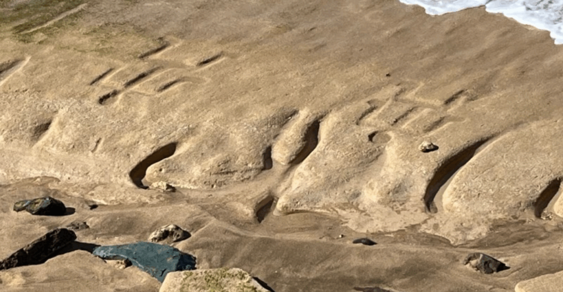 Petróglifos, que retratam figuras humanas e símbolos enigmáticos, emergiram na costa de Waianae no último dia 12